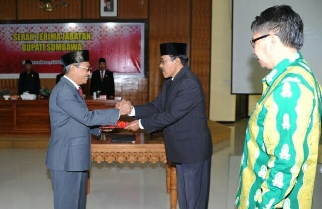 Sumbawa, Kabar Sumbawa — Penjabat Bupati Sumbawa Drs. H. Supran, MM melakukan penandatanganan berita acara serah terima jabatan kepada Bupati dan Wakil Bupati Sumbawa H. M Husni Djibril, B.Sc dan Drs. H. Mahmud Abdullah yang disaksikan oleh Staf Ahli Gubernur Bidang Politik dan Hukum Provinsi Nusa Tenggara Barat di Aula Lantai 3 Kantor Bupati Sumbawa pada Senin (22/2/2016). Hadir Wakil Gubernur NTB H. Muhammad Amin SH.,M.Si, Anggota DPRD Provinsi NTB, Anggota Forum Koordinasi Pimpinan Daerah (FKPD) Kabupaten Sumbawa, Sekda Sumbawa, Mantan Bupati Sumbawa Drs. H. Latief Majid, para anggota DPRD Kab. Sumbawa, para Kepala SKPD, para tokoh Agama tokoh Masyarakat dan para tamu undangan lainnya.