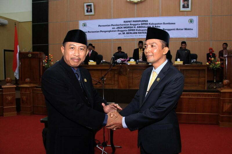 Ketua DPRD Sumbawa, L Budi Suryata, SP dalam sambutannya mengatakan, pengambilan sumpah dan janji Pergantian Antar Waktu (PAW), peresmian pemberhentian anggota atas nama Jack Morsa S. Adm dan peresmian pengangkatan anggota PAW Partai Golkar Daerah Pemilihan IV atas nama M. Berlian Rayes, SAg, mengacu kepada Surat Keputusan Gubernur Nusa Tenggara Barat No. 171-323?Tahun 2016.