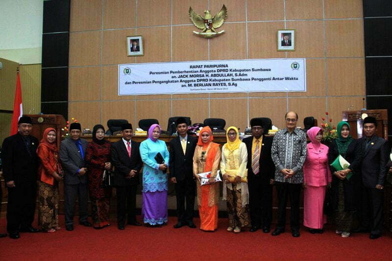 Atas nama Pimpinan dan Anggota DPRD Sumbawa, Budi menyampaikan terima kasih dan memberikan apresiasi yang setinggi-tingginya atas pengabdian dan dedikasi selama menjalankan tugas, baik bagi masyarakat di Dapilnya maupun bagi pembangunan di daerah ini. Kehadiran dan keberadaan jack Morsa selama menjadi wakil rakyat telah menjadi inspirasi dan motivasi dalam melaksanakan tugas dan fungsi secara professional. Sementara kepada M Berlian Rayes, atas nama pimpinan dan anggota DPRD Sumbawa disampikan selamat menjalankan tugas sebagai anggota DPRD, semoga ke depan dapat berkiprah untuk memberikan yang terbaik bagi rakyat di Kabupaten Sumbawa. Dengan semakin beratnya tugas dan fungsi anggota DPRD, setiap anggota diharapkan mampu menyesuaikan diri dengan memahami tugas-tugasnya sesuai mekanisme berdasarkan tata tertib dan kode etik anggota DPRD.