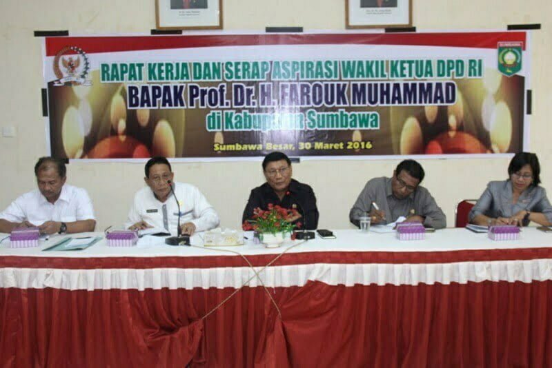 Sumbawa Besar, Kabar Sumbawa—Kabupaten Sumbawa masih tergolong dalam kelompok daerah tertinggal yang memiliki fiscal rendah, sehingga diperlukan sinergi pemerintah daerah dan pemerintah pusat dalam rangka mengakselerasi pembangunan agar bisa keluar dari kelompok daerah tertinggal. Hal tersebut disampaikan Wakil Bupati Sumbawa, Drs H Mahmud Abdullah saat menerima kunjungan Wakil Ketua DPD RI, Prof Dr Farouk Muhammad di Lantai I Kantor Bupati Sumbawa, Rabu (30/3).