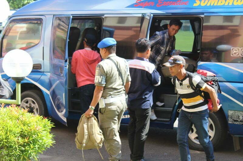 Sumbawa Besar, Kabar Sumbawa—Sebanyak 22 Eks anggota Gafatar asal Sumbawa tiba di Sumbawa Jumat Sore sekitar Pukul: 15.30 (Wita). Kedatangan mereka disambut Wakil Bupati Sumbawa, Drs. H. Mahmud Abdullah di dampingi Staf Ahli Bidang Pemerintahan, Kadis Sosial, Kepala Kantor Kesbangpoldagri, Kabag Pemerintahan, Kabag Umum dan Perlengkapan serta beberapa staf di lingkungan Dinas Sosial Kabupaten Sumbawa di Kantor Satpol PP.