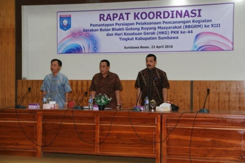 Demikian dikatakan Wakil Bupati Sumbawa Drs. H. Mahmud Abdullah pada saat memimpin rapat persiapan peringatan BBGRM dan peringatan HKG-PKK ke-44 di lantai III Kantor Bupati Sumbawa, Senin (22/4/2016).