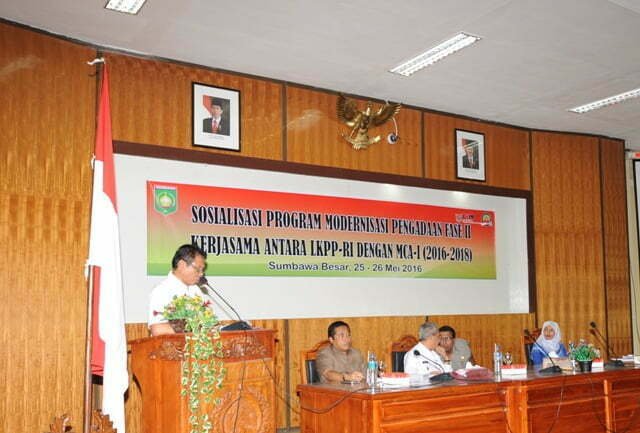 Sumbawa Besar, Kabar Sumbawa–Lembaga Kebijakan Pengadaan Barang dan jasa Pemerintah (LKPP) RI bekerjasama dengan Pemerintah Kabupaten Sumbawa Rabu (25/5/2016) menggelar Sosialisasi Program Modernisasi Pengadaan Fase II di aula lantai 3 Kantor Bupati Sumbawa.