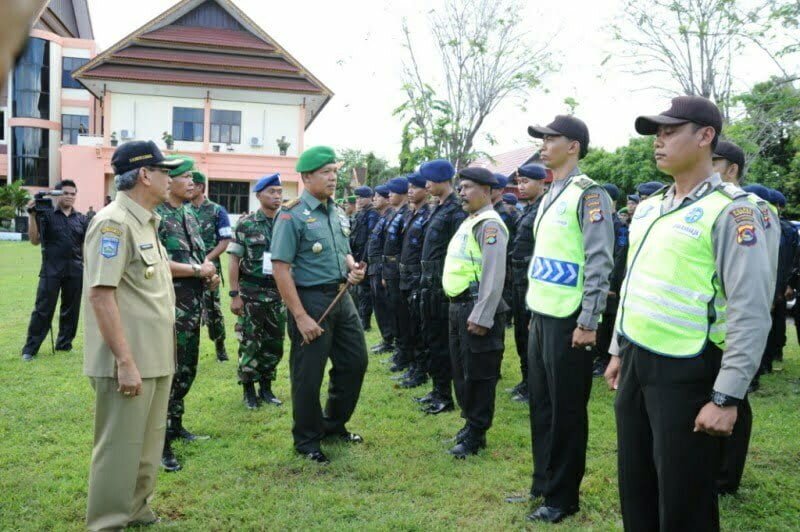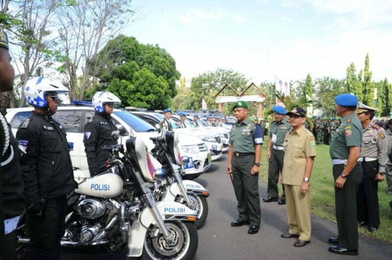 Sumbawa Besar, Kabar Sumbawa-Menyambut kedatangan Wakil Presiden Republik Indonesia ke Kabupaten Sumbawa, jajaran TNI/Polri mengadakan Gelar Pasukan pengamanan VVIP di halaman Kantor Bupati Sumbawa pada Selasa (19/7/2016).