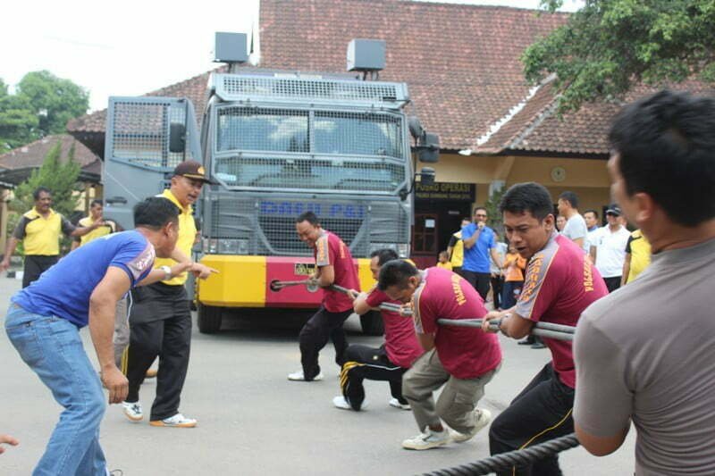 Sumbawa Besar, Kabar Sumbawa—Memeriahkan Hari Ulang Tahun (HUT) Ke-71 Kemerdekaan Republik Indonesia, Polres Sumbawa mengadakan berbagai kegiatan perlombaan. Diantaranya lomba memukul air, lomba memasukkan paku dalam botol, lomba makan krupuk dan yang paling unik adalah lomba menarik Water Canon yang diikuti oleh keluarga besar Mapolres Sumbawa, bahkan anak-anak dan ibu-ibu Bhayangkari juga berpartisipasi dalam lomba tersebut.