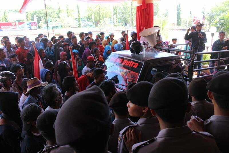 Koordinator aksi, Sukiman dalam orasinya menyampaikan, bahwa Panitia Pelaksana Pilkades dengan sengaja telah memanipulasi daftar pemilih tetap (DPT) dengan cara memasukan pemilih yang masih di bawah umur dan pindah domisili.