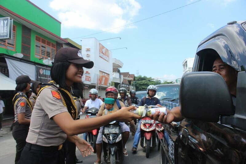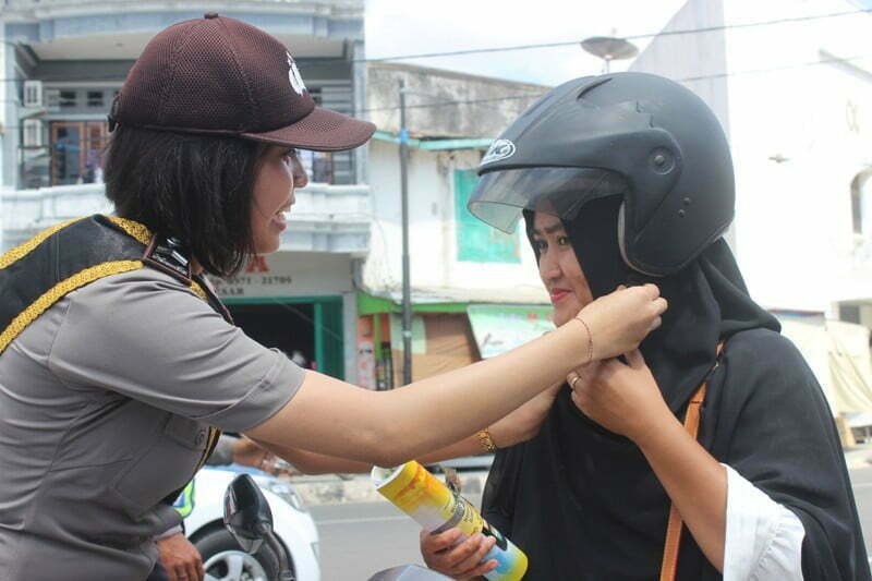 Sumbawa Besar, Kabar Sumbawa—Memeriahkan HUT Polwan Ke-68, anggota Polisi Wanita (Polwan) Polres Sumbawa menggelar berbagai kegiatan. Beberapa rangkaian kegiatan tersebut yakni, anjangsana ke Panti Asuhan Muhammadiyah Sumbawa Besar, gotong-royong membersihkan tempat-tempat ibadah, konvoi sepeda menyerukan tentang tertib berlalu-lintas serta membagi-bagikan alat tulis kepada para pengendara yang disiplin berlalu-lintas.