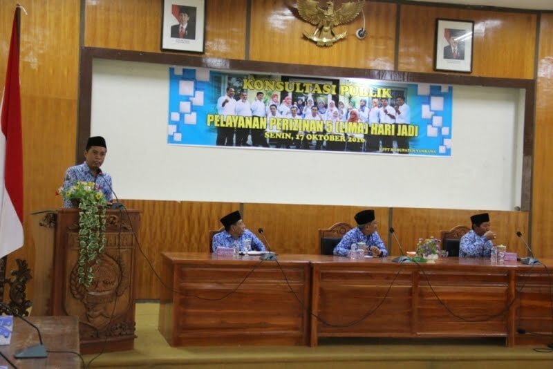 Sumbawa Besar, Kabar Sumbawa–Menindak lanjuti hasil Rapat Koordinasi yang digelar beberapa waktu yang lalu, KPPT Kabupaten Sumbawa menggelar Kosultasi Publik Layanan 5 (lima) hari jadi yang dihadiri langsung oleh Bupati, Wakil Bupati serta Sekretaris Daerah Kabupaten Sumbawa, di aula lantai 3 kantor Bupati Sumbawa pada Senin (17/10/2016).