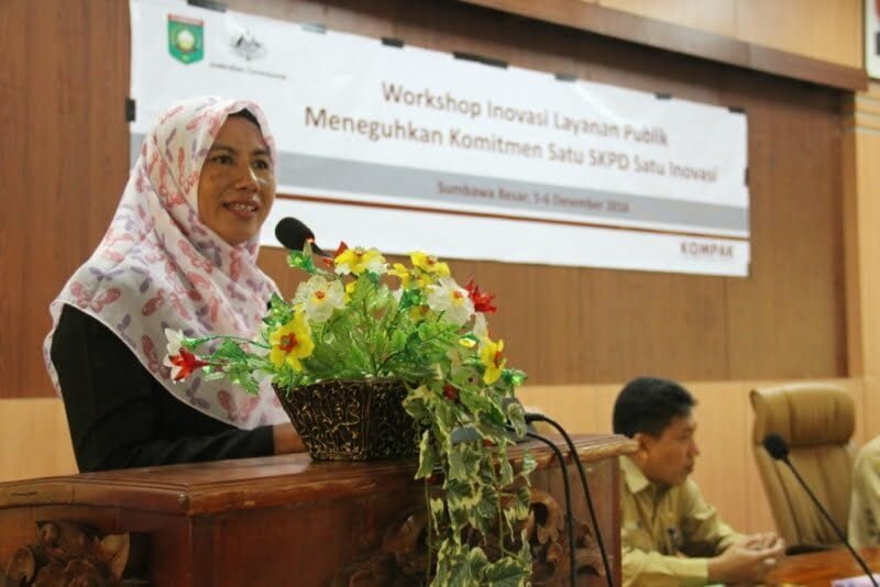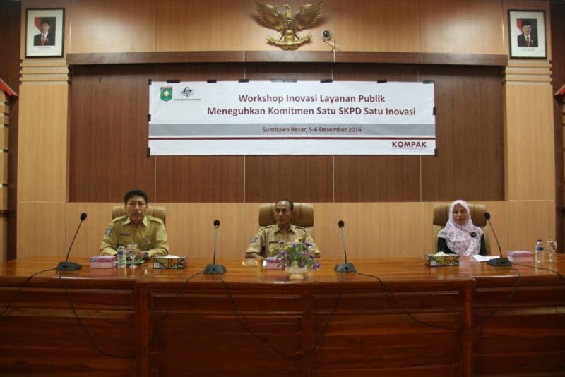 Asisten Perekonomian dan Pembangunan Setda Kabupaten Sumbawa Drs. H. Didi Darsani, Apt yang membacakan sambutan Bupati Sumbawa menyampaikan, workshop inovasi ini merupakan kegiatan fasilitasi Kompak yang sangat bermanfaat bagi upaya percepatan perbaikan tata kelola pemerintahan, khususnya terkait pelayanan publik yang merupakan tugas Aparatur Sipil Negara sebagai abdi masyarakat. Pemberian pelayanan publik oleh Aparatur Pemerintah kepada masyarakat merupakan implikasi dari fungsi Aparatur Negara sebagai pelayan masyarakat, sehingga kedudukan aparatur Pemerintah dalam pelayanan umum (public services) sangat strategis, karena akan menentukan sejauh mana Pemerintah mampu memberikan pelayanan yang sebaik-baiknya bagi masyarakat.