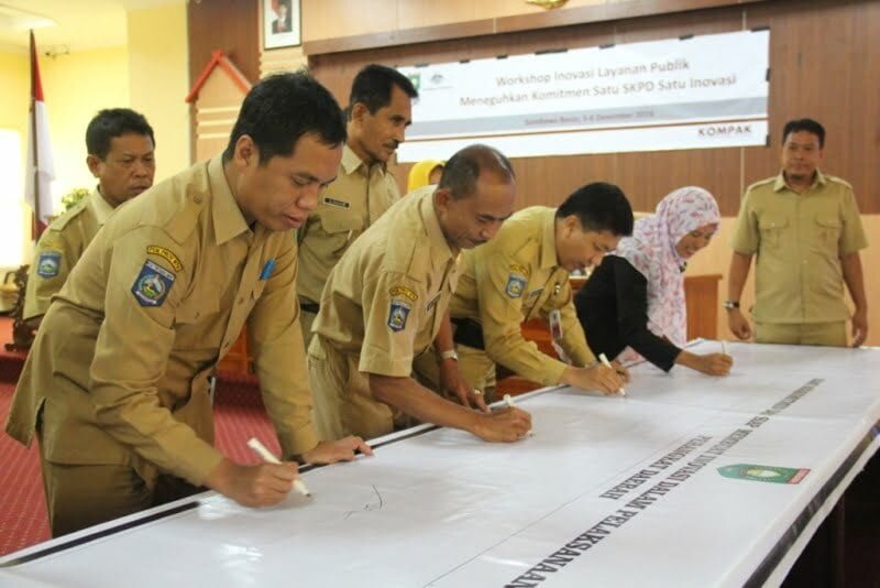Untuk itu Instansi Pemerintah diharapkan terus berupaya menciptakan inovasi pelayanan publik untuk kemudahan pelayanan melalui efisiensi dan efektivitas birokrasi. Karena agenda substansial dari kegiatan workshop ini adalah melembagakan dan menginternalisasi gerakan one agency one innovation, bukan hanya kewajiban untuk menciptakan minimal satu inovasi pelayanan publik bagi setiap perangkat daerah, tetapi harus mampu melipatgandakan, baik dari segi jumlah maupun kualitas pelayanan publik serta tersusun dalam agenda yang terencana dengan rapi. Sehingga dibutuhkan komitmen bersama untuk menumbuhkan inovasi.