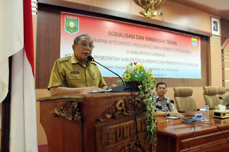 Sumbawa Besar, Kabarsumbawa.com, – Untuk mewujudkan akuntabilitas dan transparansi di Kabupaten Sumbawa, Pemerintah Kabupaten Sumbawa melalui Bagian Pembangunan Setda Kabupaten Sumbawa, melakukan kerjasama dengan Pemerintah Kota Bandung. Kerjasama tersebut guna lakukan Sosialisasi dan Bimbingan Teknis Penerapan Integrated Resources Management System (IRMS) pada Selasa pagi (14/11/2017) di Aula H. Madilaoe ADT Lantai 3 Kantor Bupati Sumbawa.
