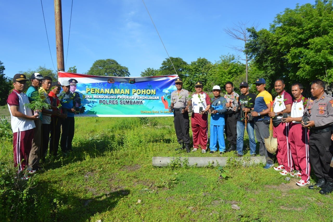 Sumbawa Besar, Kabarsumbawa.com – Dalam rangka mendukung Program Penghijauan Pemerintah, guna mencegah dan penanggulangan bencana alam, Polres Sumbawa melakukan penanaman belasan ribu pohon. Pohon-pohon tersebut ditanam di 24 Kecamatan se-Kabupaten Sumbawa.