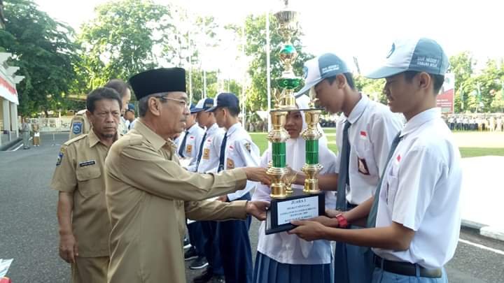 Sumbawa Besar, Kabarsumbawa.com – Bupati Sumbawa H. M. Husni Djibril B.Sc menyerahkan hadiah lompa Inovasi Daerah di Bidang Teknologi. Hadiah diserahkan Bupati usai memimin upacara Senin pertama bulan Februari (03/02/2020) di Halaman Kantor Bupati Sumbawa.