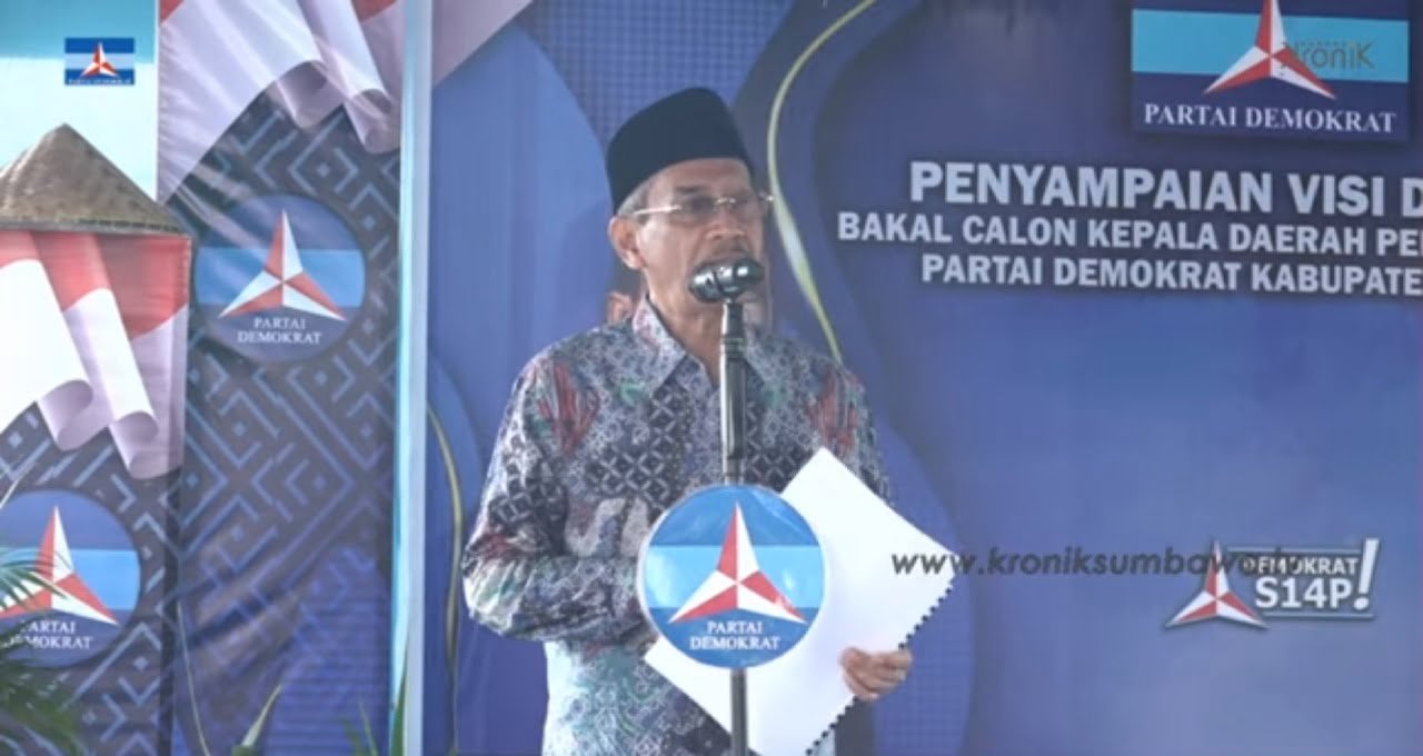 Sumbawa Besar, Kabarsumbawa.com – Bupati sumbawa H. M. Husni Djibril B.Sc menyampaikan visi misi yang digelar oleh DPC Partai Demokrat Sumbawa sekaligus menjadi bakal calon terakhir dalam menyampaikan visi misinya, Jumat siang (28/02/2020) di rumah biru Demokrat.
