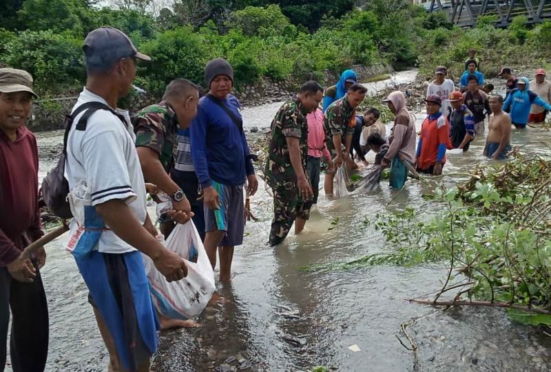 Sumbawa Besar, Kabarsumbawa.com – Curah hujan yang cukup tinggi mengakibatkan tanggul pembagian saluran air untuk persawahan rusak terbawa arus air. Untuk memperbaikinya, anggota Koramil 1607-09/Utan Rhee bersama masyarakat dan kelompok tani Desa Orong Bawah, Desa Pukat dan Desa Stoe Brang Kecamatan Utan melaksanakan gotong royong pembuatan bendungan dan pembagian saluran air sungai Brang Utan ke lahan persawahan.