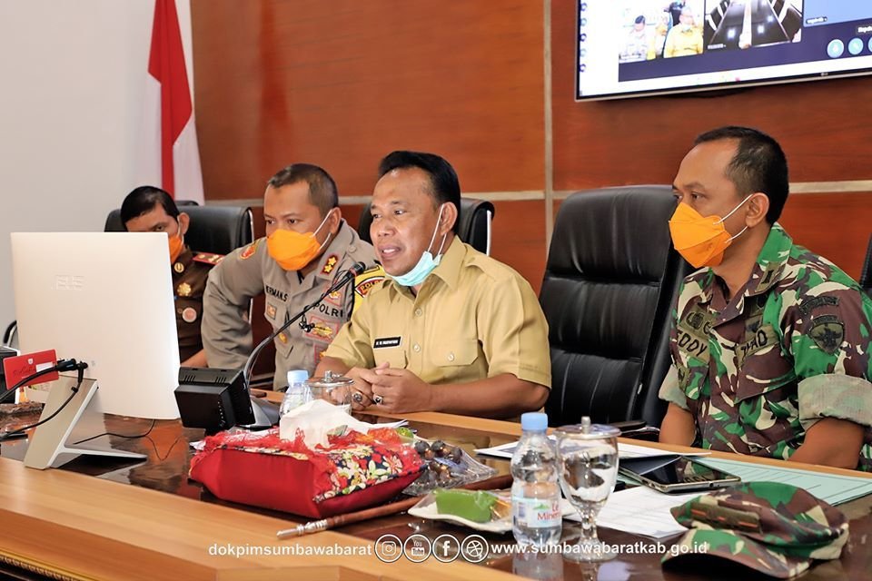 Sumbawa Barat, KabarSumbawa.com – Bupati Sumbawa Barat melaksanakan rapat bersama Gubernur Nusa Tenggara Barat beserta Bupati / Walikota se- Nusa Tenggara Barat bertempat di Ruang Rapat Utama Graha Fitrah, Selasa (07, 04, 2020) pagi. Rapat yang digelar melalui video conference tersebut membahas terkait dengan Jaring Pengaman Sosial (JPS) penanganan COVID-19 yang dilakukan diberbagai daerah di Nusa Tenggara Barat. Hadir dalam kegiatan ini Ketua DPRD KSB, Sekretaris Daerah KSB, Kapolres KSB, Dandim KSB, Kajari KSB dan Kepala Bagian Protokol dan Komunikasi Pimpinan Daerah Setda serta beberapa rekan media.