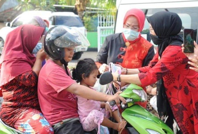 Sumbawa, kabarsumbawa.com – Mengantisipasi penyebaran virus corona (covid-19), Ketua Tim Penggerak PKK Kabupaten Sumbawa bersama jajarannya bagikan masker kain gratis kepada pengendara dan warga yang melintas di depan puskesmas seketeng dan puskesmas brangbiji, kamis (09/04/2020).