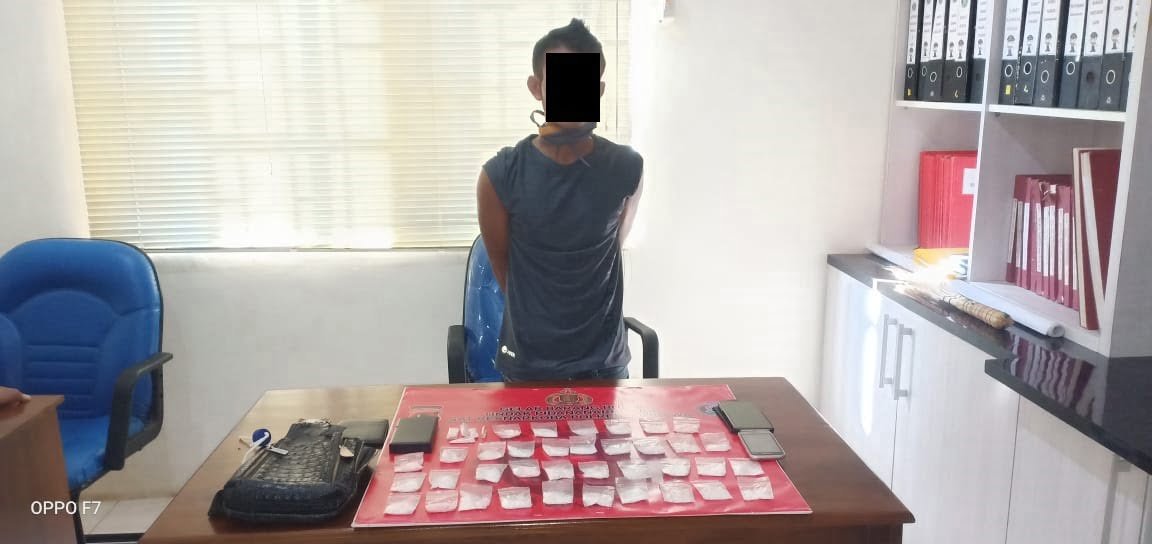 Sumbawa Besar, Kabarsumbawa.com – Satres Narkoba Polres Sumbawa menangkap seorang terduga bandar narkoba berinisial SY (33), Senin (13/04/2020) pukul 13.30 siang tadi. Dari tangannya, berhasil diamankan sebanyak 39 poket shabu.