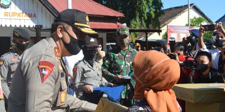 Bantuan ini diserahkan pada saat memberikan arahan kepada anggota TNI Kodim 1607 Sumbawa, Anggota Polres Sumbawa dan Anggota Kompi 1 Bataliyon B Pelopor dimako Polres Sumbawa pagi tadi (5/06).
