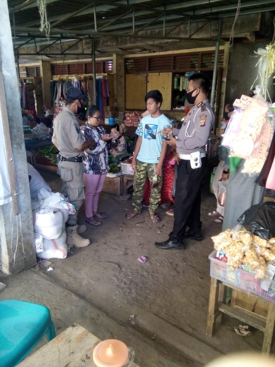Petugas juga terus mengingatkan para pedagang dan pengunjung pasar untuk tetap menggunakan masker serta menjaga jarak dan menghindari kontak fisik.
