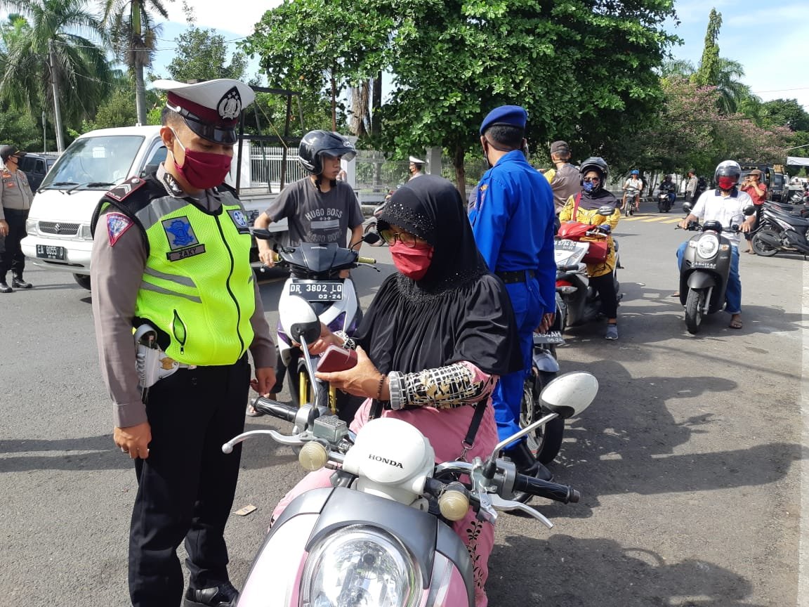 Bagi pengendara yang melanggar lanjut Kasat, diberikan teguran tertulis dan meminta mereka kembali ke rumah masing-masing untuk mengambil helm dan masker.