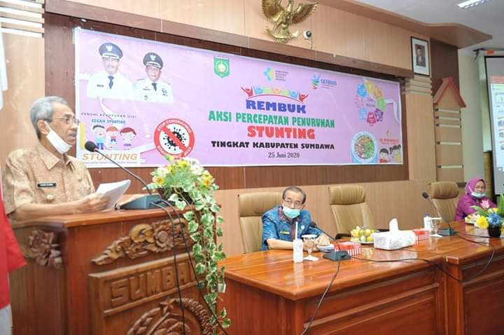 Bupati Sumbawa, H. M Husni Djibril, B.Sc., menyampaikan, sejak tahun 2013-2018, angka prevalensi stunting di Kabupaten Sumbawa tergolong tinggi. Hasil Riskesdas tahun 2013 menunjukkan angka stunting mencapai 37,2%. Kemudian berdasarkan hasil survey pemantauan gizi tahun 2017, angka stunting di kabupaten sumbawa menempati urutan pertama tertinggi dari 10 Kabupaten/Kota lain di NTB sebanyak 41,82%. Dan dari hasil riskesdas tahun 2018, kejadian stunting di Kabupaten Sumbawa mengalami penurunan sebesar 10% menjadi 31,53%.