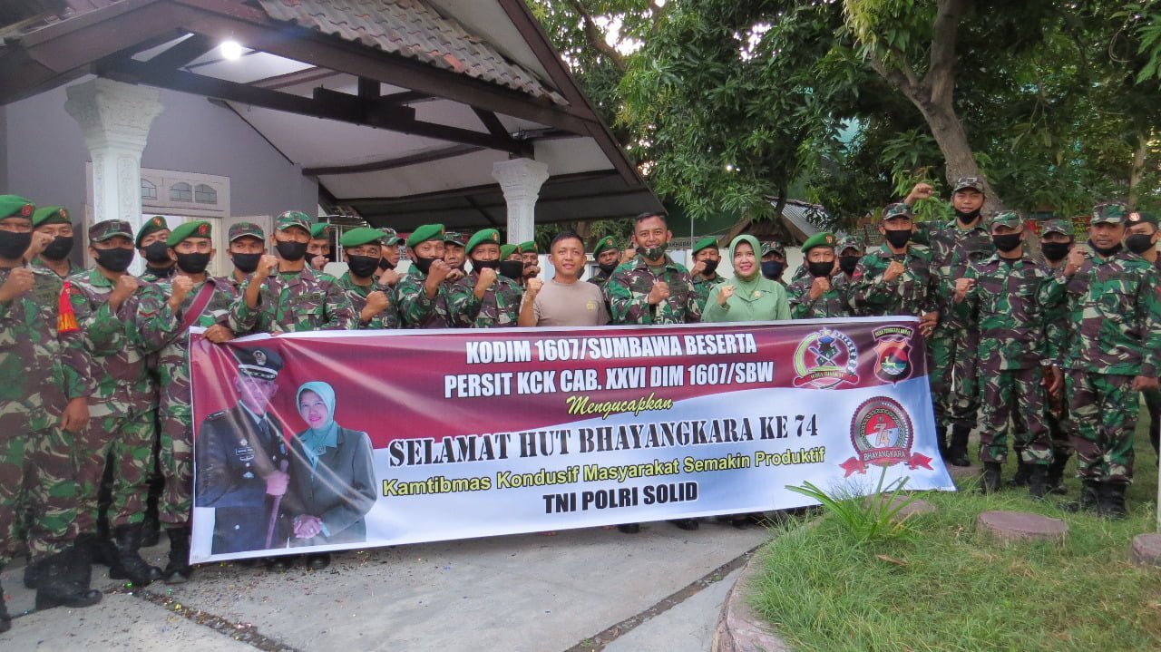 Dalam kesempatan tersebut, Dandim 1607/Sumbawa menyampaikan bahwa kegiatan pagi hari ini untuk memberikan surprise kepada rekan-rekan Polri Jajaran Polres Sumbawa pada HUT Bhayangkara Ke-74 sebagai salah satu bentuk kebersamaan dan Sinergitas TNI-Polri di wilayah Kabupaten Sumbawa.