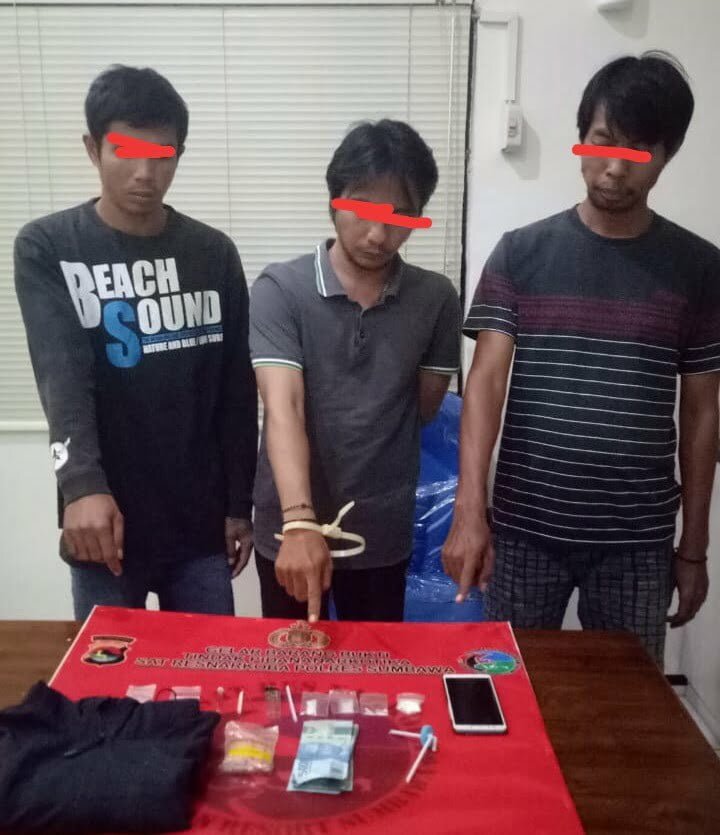 Sumbawa Besar, Kabarsumbawa.com – Tiga orang warga Kecamatan Alas, diamankan oleh Tim Opsnal Polres Sumbawa, Senin (27/07/2020) malam. Mereka diamankan atas dugaan penyalagunaan narkotika jenis sabu.