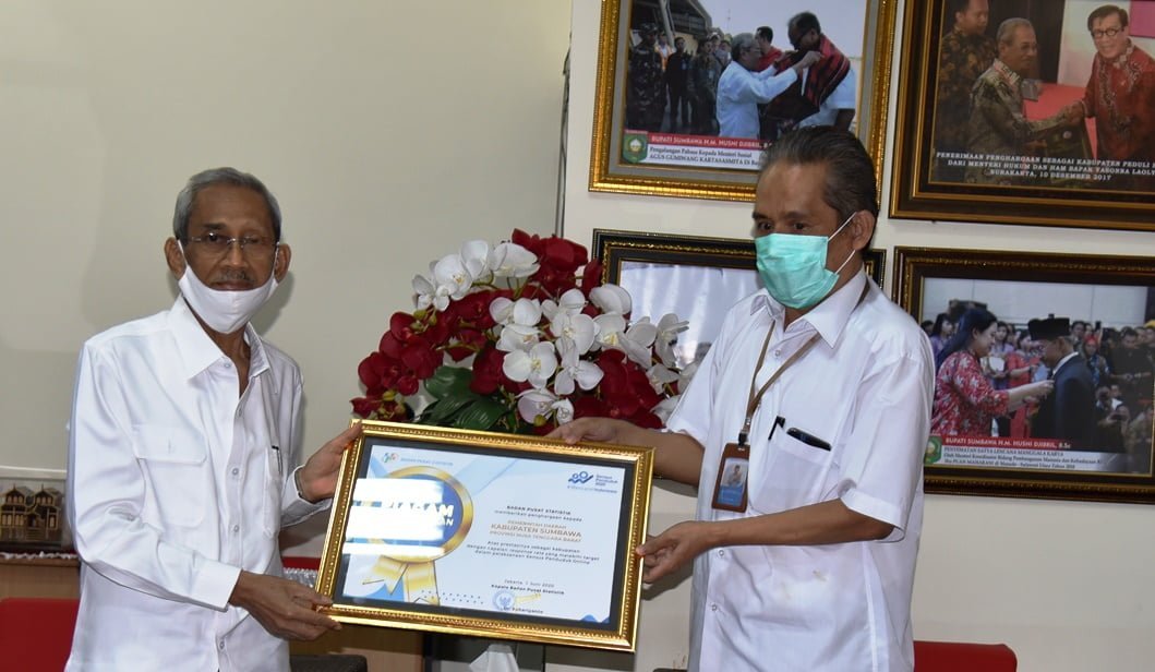 Penghargaan ini disampaikan oleh Kepala BPS Kabupaten Sumbawa mewakili Kepala BPS RI pada Rabu siang (05/08/2020) di Ruang Pertemuan Bupati Sumbawa.