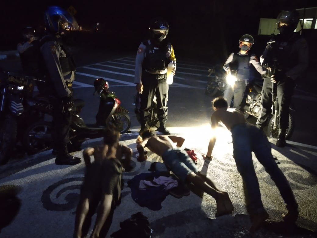 Selanjutnya menerima informasi dari masyarakat adanya sekelompok anak muda yg sedang nongkrong dan minum minuman keras selanjutnya anggota memberikan tindakan push up dan teguran agar tidak mengulangi hal tsb serta menghimbau agar segera pulang kerumah masing masing.