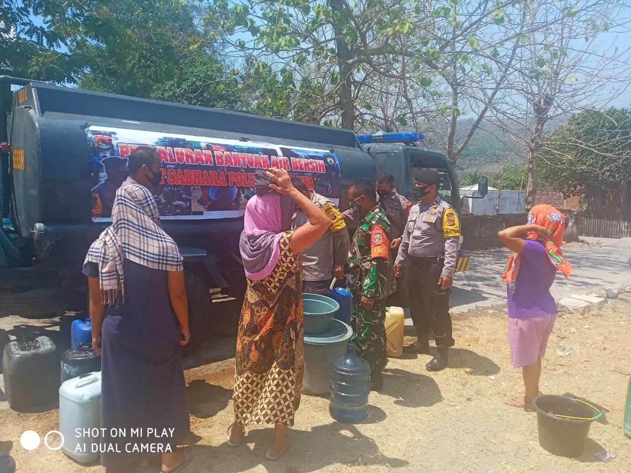 Penyaluran dilakukan oleh Anggota Dalmas Sat Sabhara, besrama Babhinkamtibmas dan Babinsa dipimpin oleh Kasat Sabhara Iptu Mulyadi SH. Air dianggut menggunakan AWC milik Polres Sumbawa.