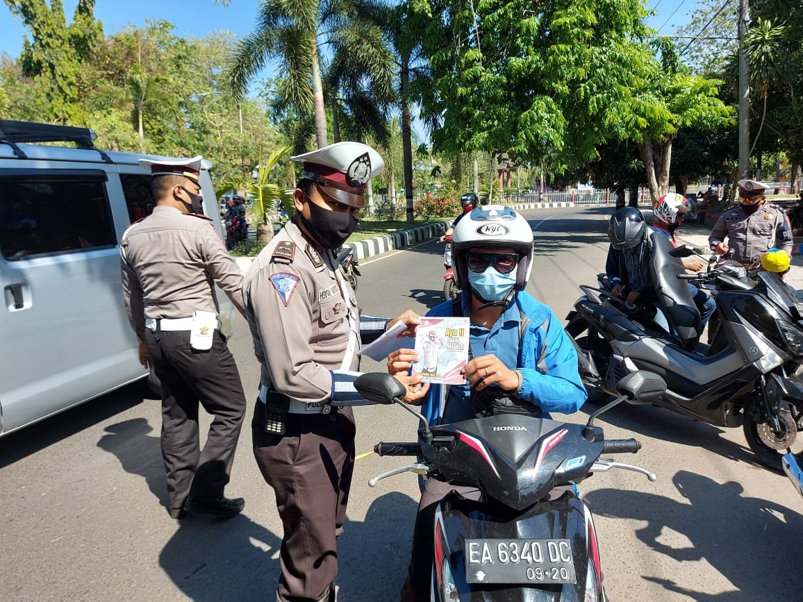 dikatakannya, bahwa pembagian masker, hand sanitizer, himbauan pendisiplinan protokol kesehatan dan pembagian stiker ajakan “Ayo Pakai Masker” di sejumlah lokasi dan sejumlah kalangan oleh Satlantas polres Sumbawa, setelah diberlakukannya Inpres nomor 06 tahun 2020 yang memberikan kewenangan kepada TNI/Polri untuk berkordinasi dengan pemerintah daerah dalam meningkatkan disiplin masyarakat dan penegakkan protokol kesehatan.