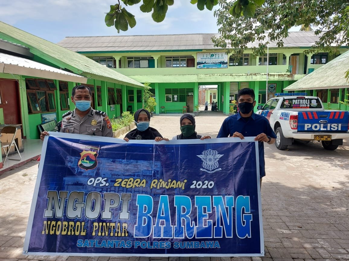 Salah satunya, melaksanakan kegiatan NGOPI alias Ngobrol Pintar di Sekolah-sekolah di Kabupaten Sumbawa, Senin (02/11/2020). Melalui kegaitan ini, anggota Satlantas memberikan edukasi tentang lalu lintas kepada penduduk sekolah serta memberikan himbauan penerapan protokol kesehatan di lingkungan sekolah.