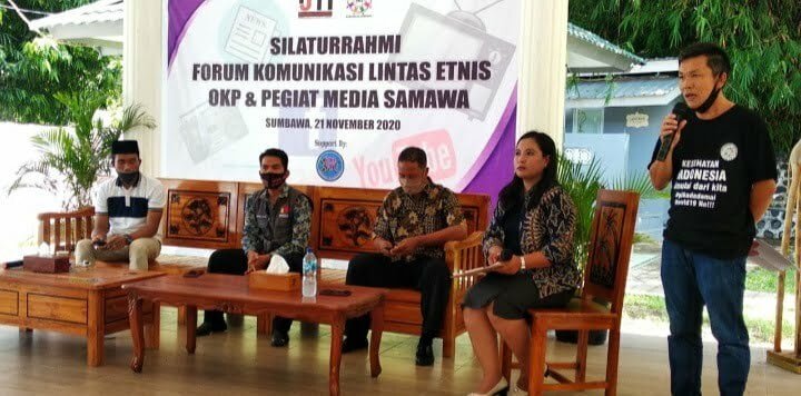 Sumbawa Besar, Kabarsumbawa.com – Forum Komunikasi Lintas Etnis (FKLE) bersama dengan Ikatan Jurnalis Televisi Indonesia Kabupaten Sumbawa, melaksanakan kegaiatan diskusi bersama Organisasi Kepemudaan, Penggiat Media, dan Insan Pers, Sabtu (21/11/2020) di Raberas Resto, Sumbawa.