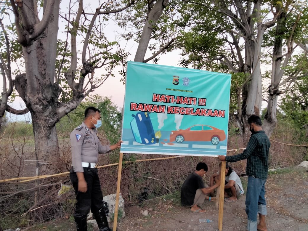Sumbawa Besar, Kabarsumbawa.com – Satuan Lalu Lintas (Satlantas) Polres Sumbawa kembali menambah pemasangan puluhan spanduk rawan laka dan banner himbauan tertib berlalu lintas di daerah rawan kecelakaan jalur lintas pulau Sumbawa, baru – baru ini.