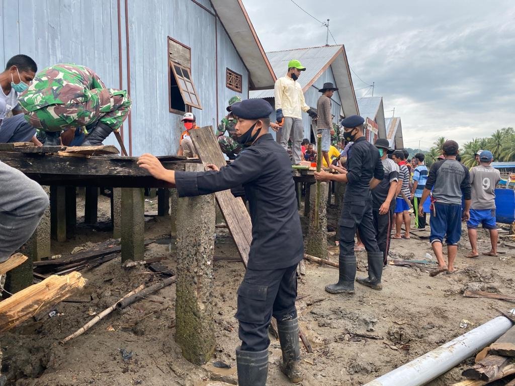 Danki Brimob AKP Sulaiman H Husain., mengatakan, sebanyak 30 orang anggota diterjunkan untuk ikut bergotong royong bersama warga dan juga dari anggota TNI.