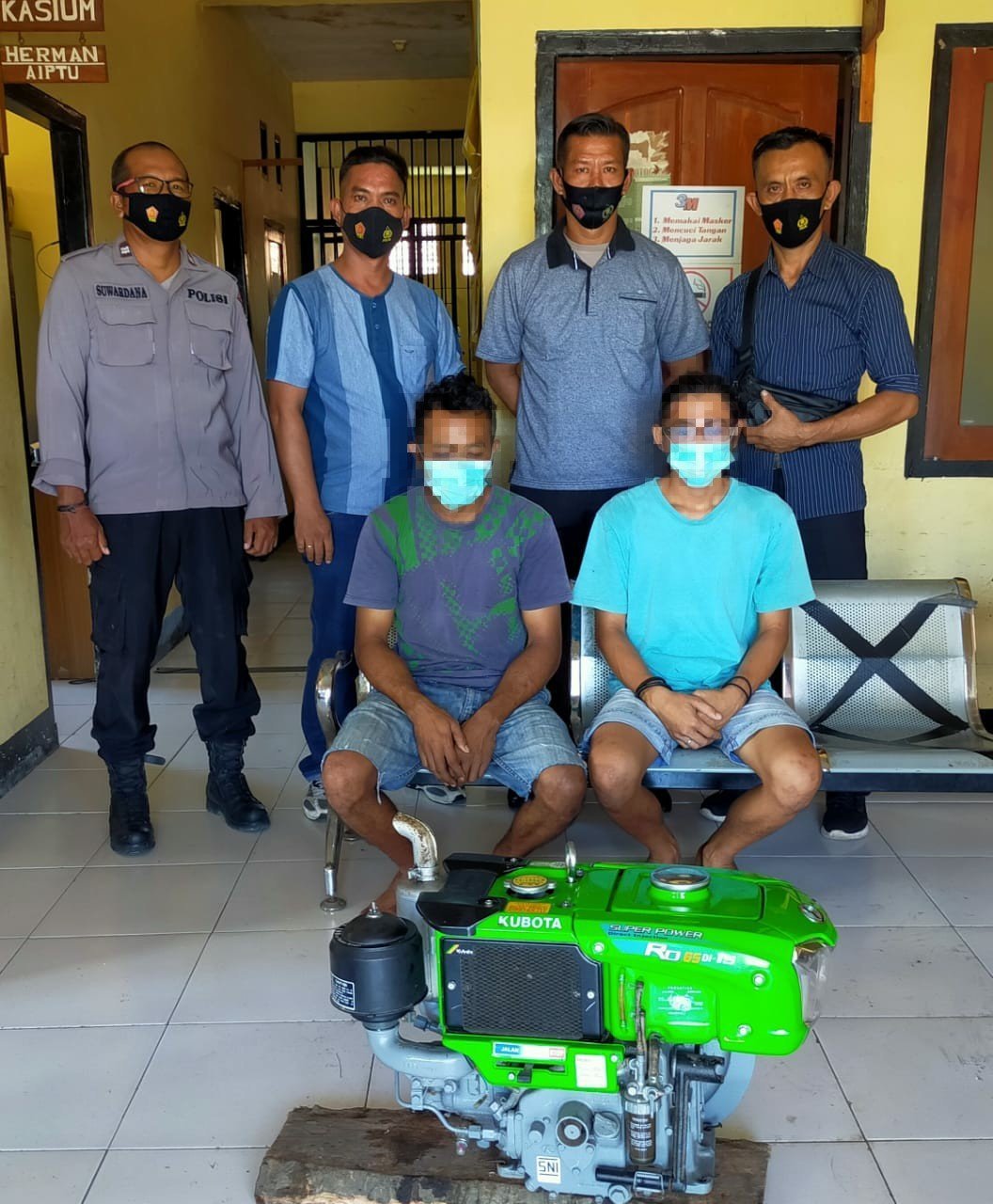 Kapolsek Kempo melalui Paur Humas Polres Dompu Aiptu Hujaifah mengatakan, WW dan AS ditangkap lantaran diduga mencuri 1 (satu) unit mesin Engkel merk Kubota milik Edy Chandrawan (46), juga warga Dusun Madya Desa Kempo, sesuai Laporan Polisi Nomor: LP/ 05 / III /2021/NTB/Res. Dompu/Sek Kempo, tanggal 2 Maret 2021.