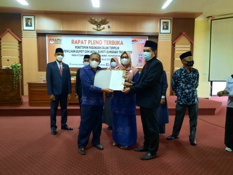 Sumbawa Besar, Kabarsumbawa.com – Komisi Pemilihan Umum (KPU menetapkan pasangan nomor urut 4 Drs. H. Mahmud Abdullah – Dewi Noviani, S.Pd, M.Pd., sebagai Bupati dan Wakil Bupati Sumbawa terpilih hasil Pemilihan Kepala Daerah (Pilkada) tahun 2020 pasca putusan Mahkamah Konstitusi (MK) nomor : 110/PHP-XIX/2021.
