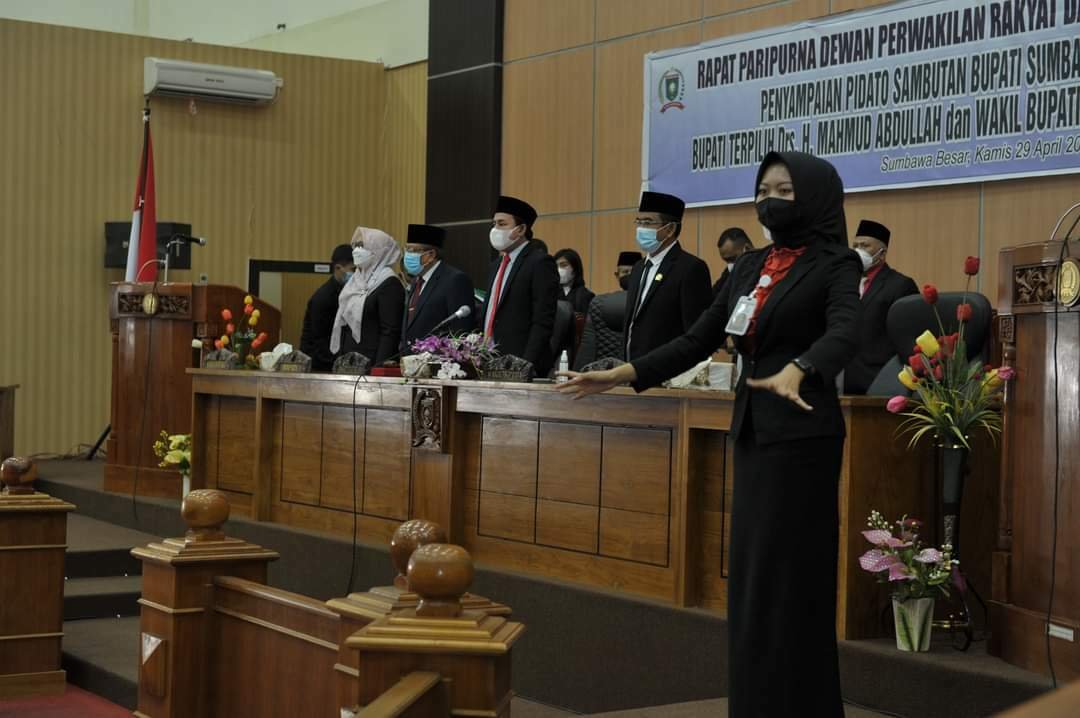 Paripurna yang diwarnai dengan beberapa interupsi berisi ucapan selamat, saran dan dukungan, dipimpin Ketua DPRD Sumbawa, Abdul Rafiq, SH., dihadiri seluruh Pimpinan dan Anggota DPRD, Anggota Forum Koordinasi Pimpinan Daerah Kabupaten Sumbawa, Sekretaris Daerah, para Asisten Sekretaris Daerah, Staf Ahli Bupati, Pimpinan OPD, tokoh agama, tokoh masyarakat, tokoh wanita dan insan pers.
