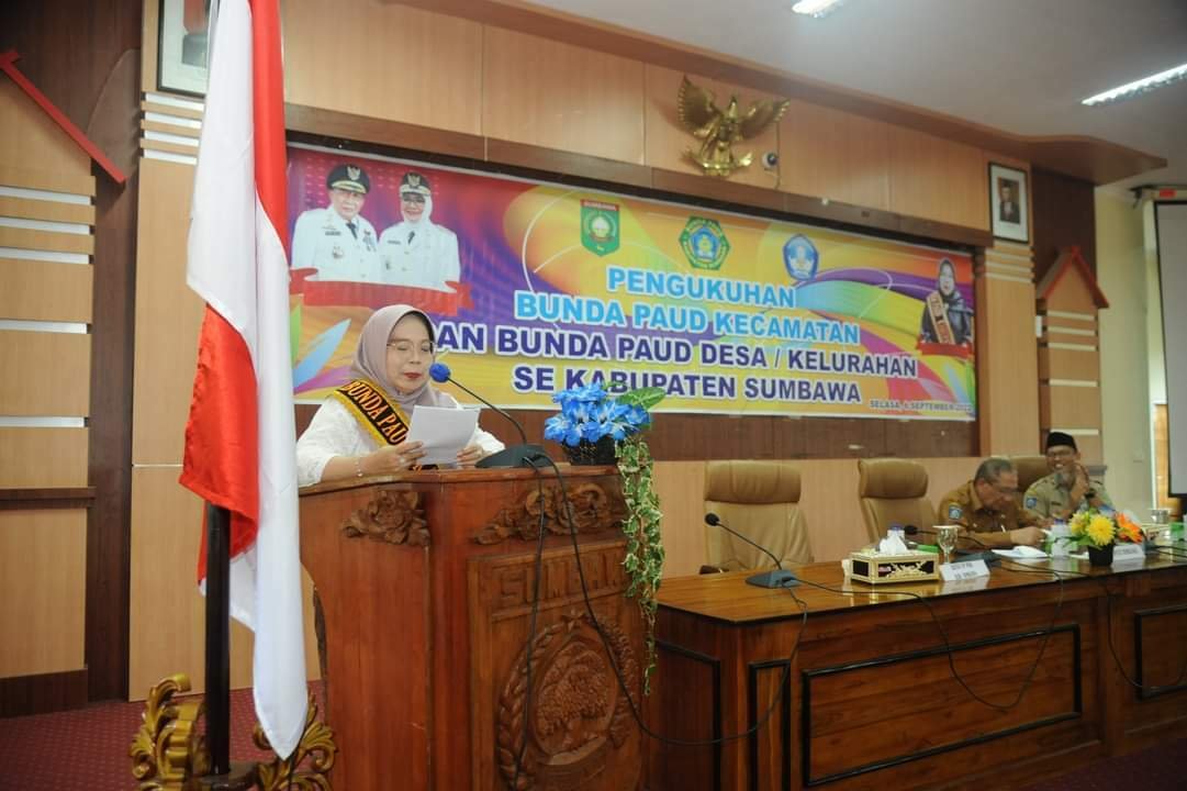 Bupati Sumbawa, mengucapkan selamat atas dikukuhkannya Bunda PAUD Kecamatan dan Bunda PAUD Desa/Kelurahan se-Kabupaten Sumbawa. Bupati berharap, para Bunda PAUD yang dikukuhkan dapat terus bekerjasama dan bersinergi dalam rangka meningkatkan mutu PAUD di Kab. Sumbawa.
