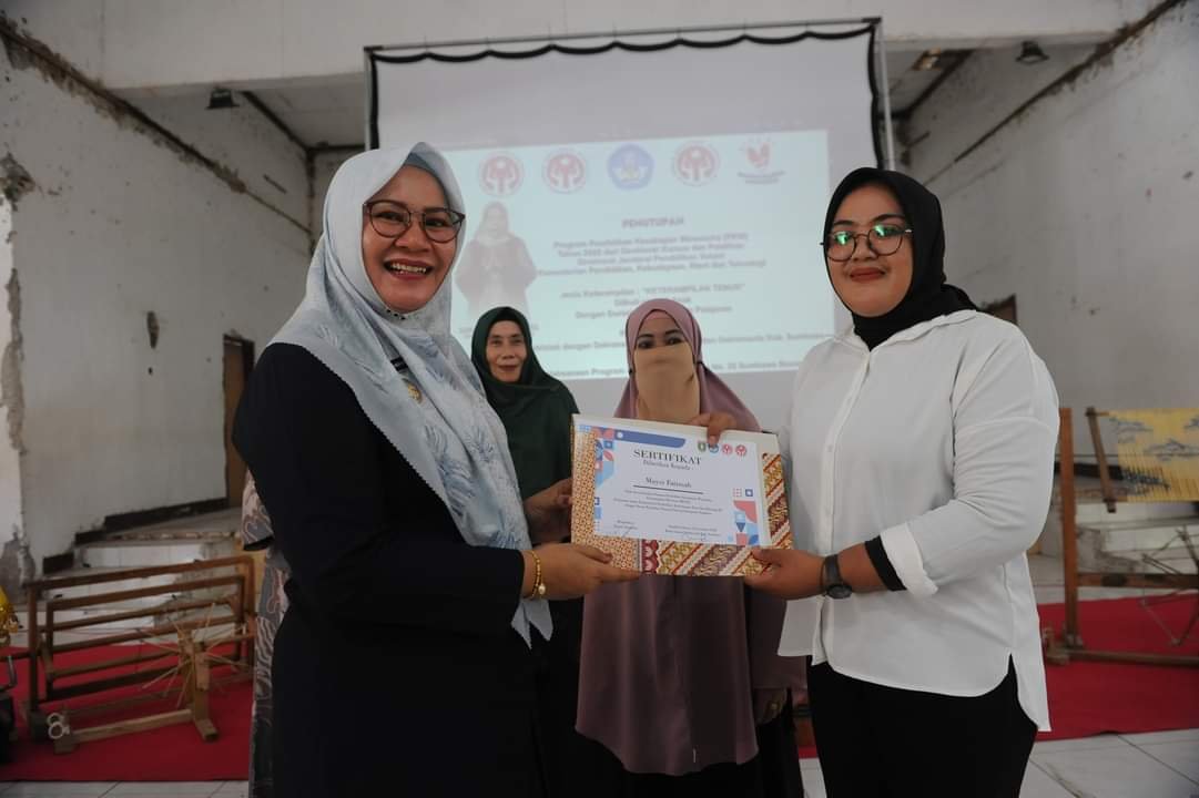 Di akhir kegiatan, Wakil Bupati Sumbawa Didampingi Ketua Umum Dekranasda Kabupaten Sumbawa menyerahkan sertifikat kepada perwakilan peserta dan instruktur. Setelah itu, Ketua Umum Dekranasda Kabupaten Sumbawa juga menyerahkan set lengkap alat tenun gedokan kepada seluruh peserta, untuk digunakan dalam menjalankan bisnis tenun secara mandiri. (KS/aly)