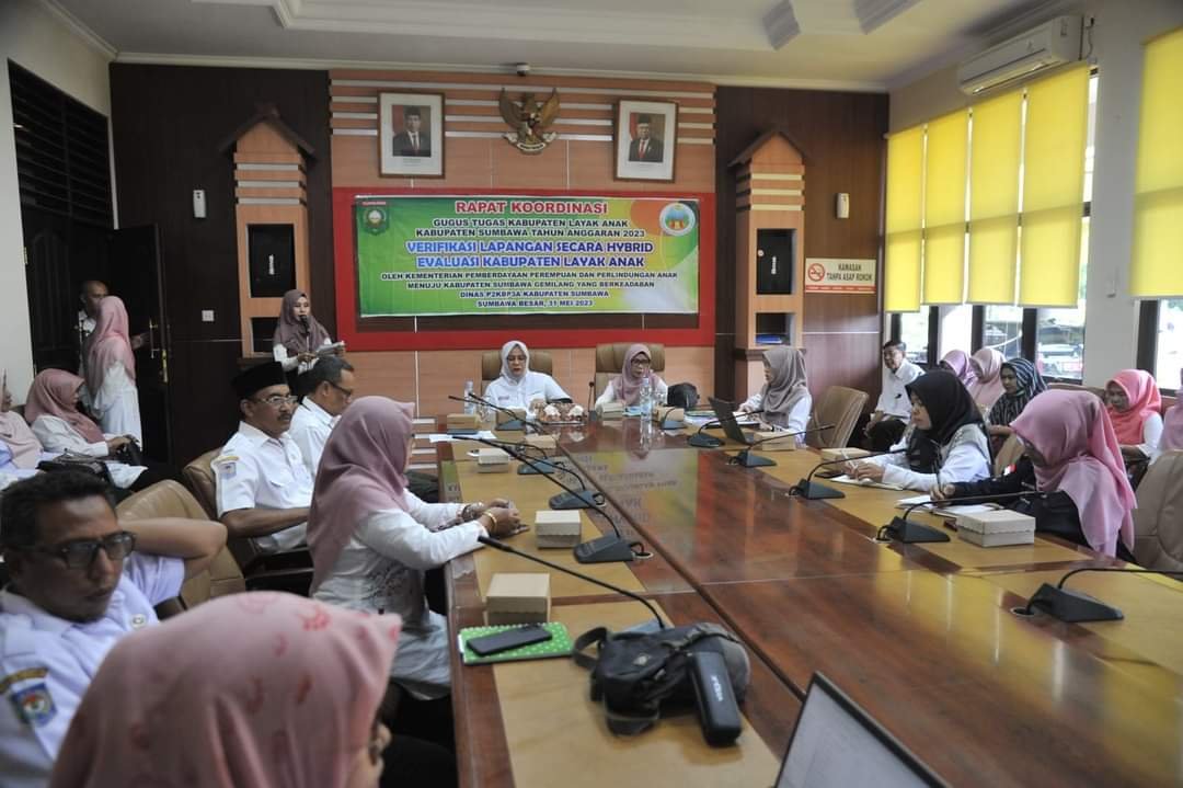 Rapat dihadiri oleh Tim Verifikasi Lapangan KLA Kementerian Pemberdayaan Perempuan dan Perlindungan Anak (PPPA) RI dan Tim Verifikasi Administrasi KLA Provinsi NTB, serta sejumlah OPD terkait Lingkup Pemda Sumbawa.