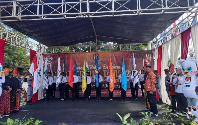 “Ini tindaklanjut dari kegiatan yang dilaksanakan tanggal 14 Februari 2023. Kita diundang oleh KPU RI untuk menyaksikan pelepasan bendera peserta pemilu 2024. Hari ini tiba di Kabupaten Sumbawa menuju 251 hari menuju hari pemungutan suara,” kata Ketua KPU Sumbawa, M Wildan dalam sambutannya.