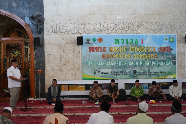 Hal ini disampaikan bupati dalam sambutan tertulisnya yang dibacakan Asisten Administrasi Umum – Ir.Dirmawan pada pembukaan Musyawarah Daerah (Musda) Dewan Masjid Indonesia (DMI) Kabupaten Sumbawa, Minggu (25/6/2023) di Masjid Agung Nurul Huda Sumbawa Besar.