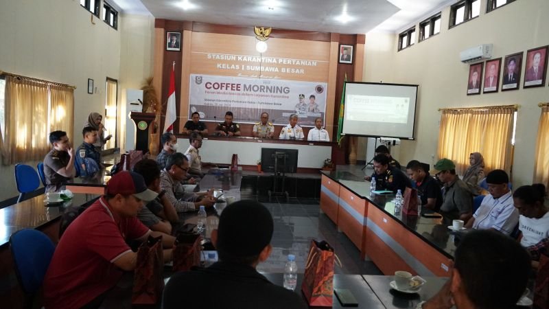 Sumbawa Besar, Kabarsumbawa.com – Karantina Pertanian Sumbawa melaksanakan Coffe Morning bersama wartawan dengan tema “Peran Media Masa Dalam Layanan Karantina” (25/11). Bertempat di aula setempat acara juga dihadiri instansi terkait seperti Bea Cukai, Kejaksaan, Kepolisian, KSOP dan lainya.