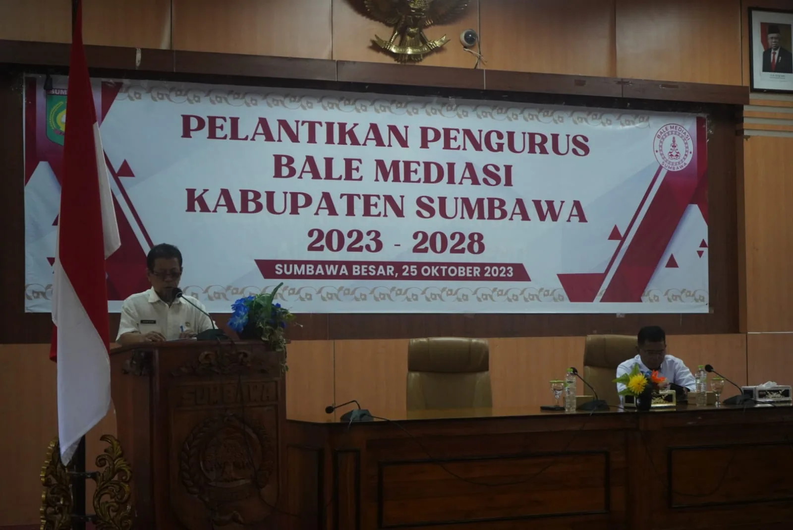 Dalam Sambutannya Sekretaris Daerah Kabupaten Sumbawa Drs. H. Hasan Basri, MM., menyampaikan pengukuhan Bale Mediasi ini merupakan upaya Pemerintah dalam memfasilitasi penyelesaian sengketa secara adil dan efisien di Kabupaten Sumbawa dengan tujuan menciptakan lingkungan yang kondusif bagi perdamaian dan Kesejahteraan masyarakat.