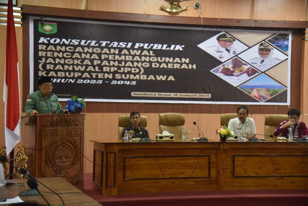Sumbawa Besar, Kabarsumbawa.com – Pemerintah Kabupaten Sumbawa menggelar kegiatan Konsultasi Publik Rancangan Awal Rencana Pembangunan Jangka Panjang Daerah (RANWAL RPJPD) Kabupaten Sumbawa tahun 2025-2045.