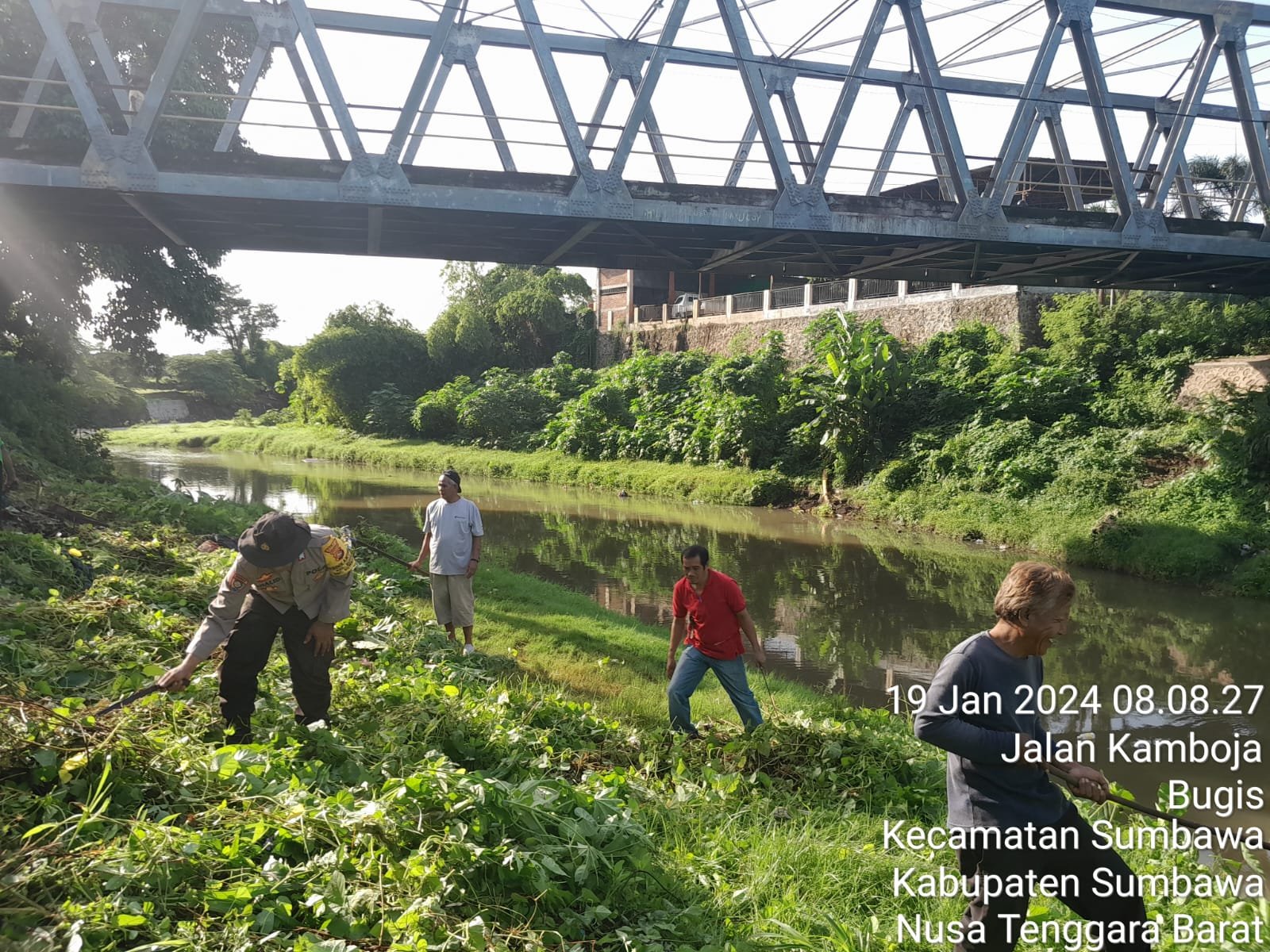 Sumbawa Besar, Kabarsumbawa.com – Tiga Pilar Kamtibmas Kelurahan Bugis Kecamatan Sumbawa bersama-sama dengan personel Koramil Sumbawa melaksanakan pembersihan di sepanjang bantaran kali kelurahan bugis, Jumat (19/01/24) pagi.