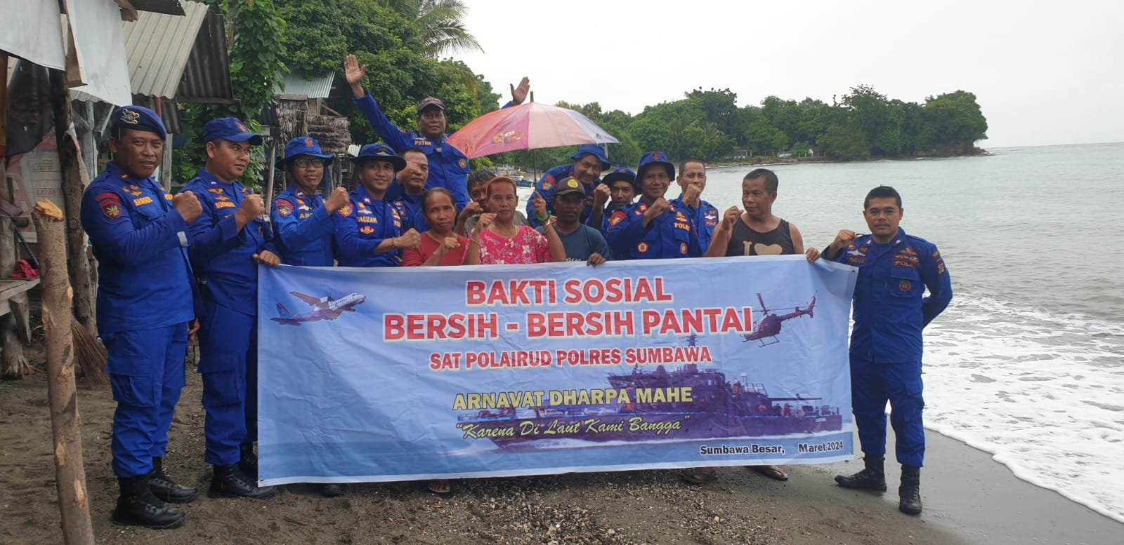 “Kami dari sat polairud Polres Sumbawa Polda NTB menggelar bakti sosial bersih bersih sampah yang ada dipantai Empan Desa Labuan Badas dan pantai Batu Gong” ucapnya.