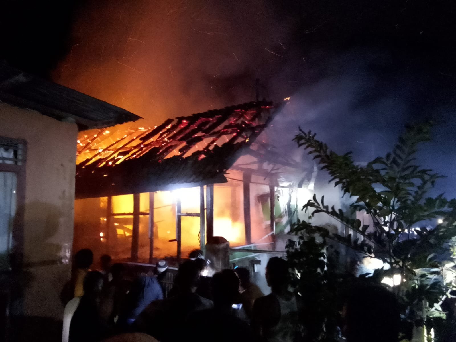 “Kejadian terjadi ketika pemilik rumah sedang berada di masjid untuk menjalankan ibadah taraweh. Rumah beserta isinya hangus terbakar,” katnya.